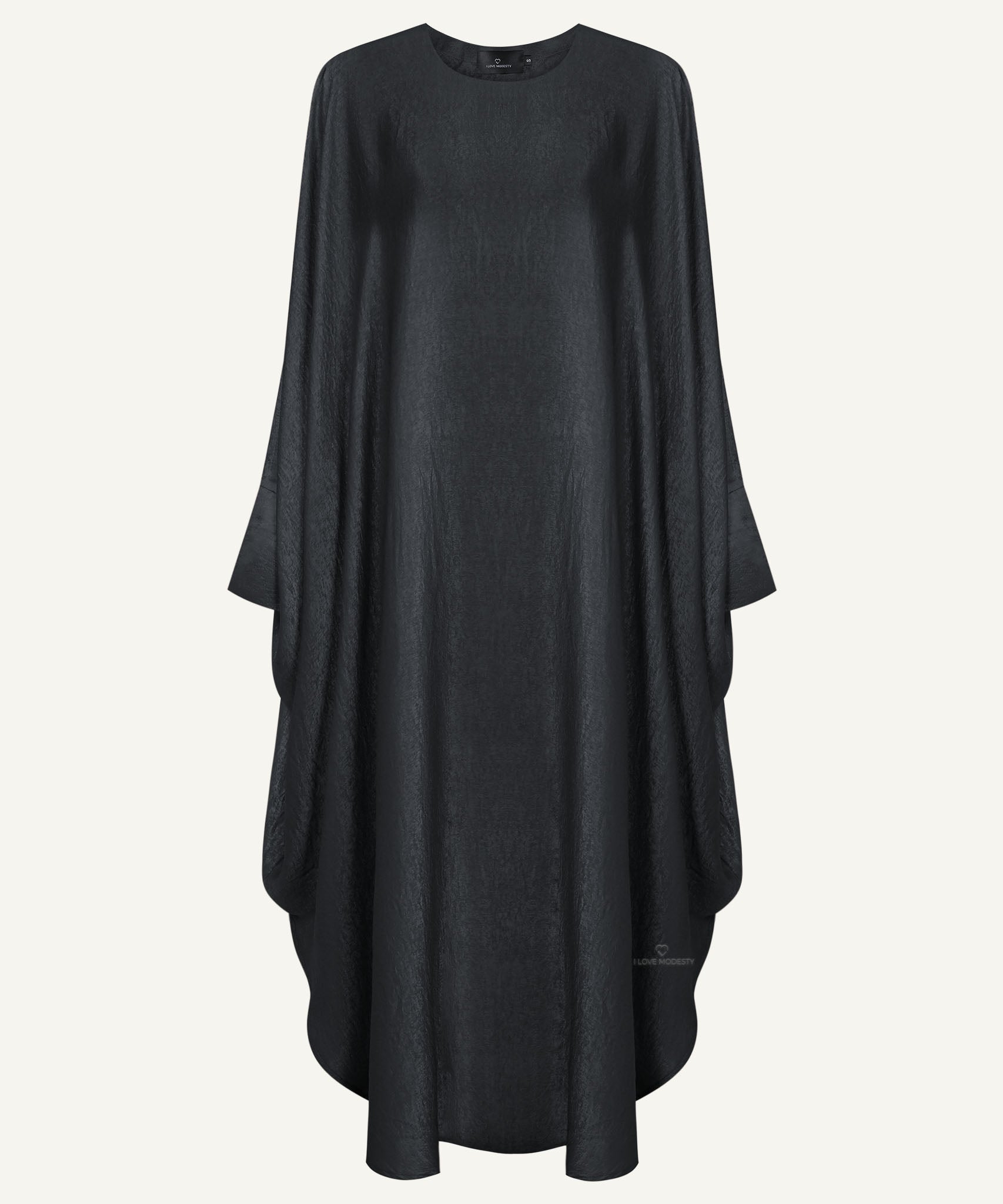 This Black Cuffed Sleeves Kaftan is crafted from silk velvet with a subtle sheen. It features cuff-style sleeves that add a distinctive and elegant touch to the flowing silhouette. Suitable for festive gatherings, formal occasions, and evening wear.