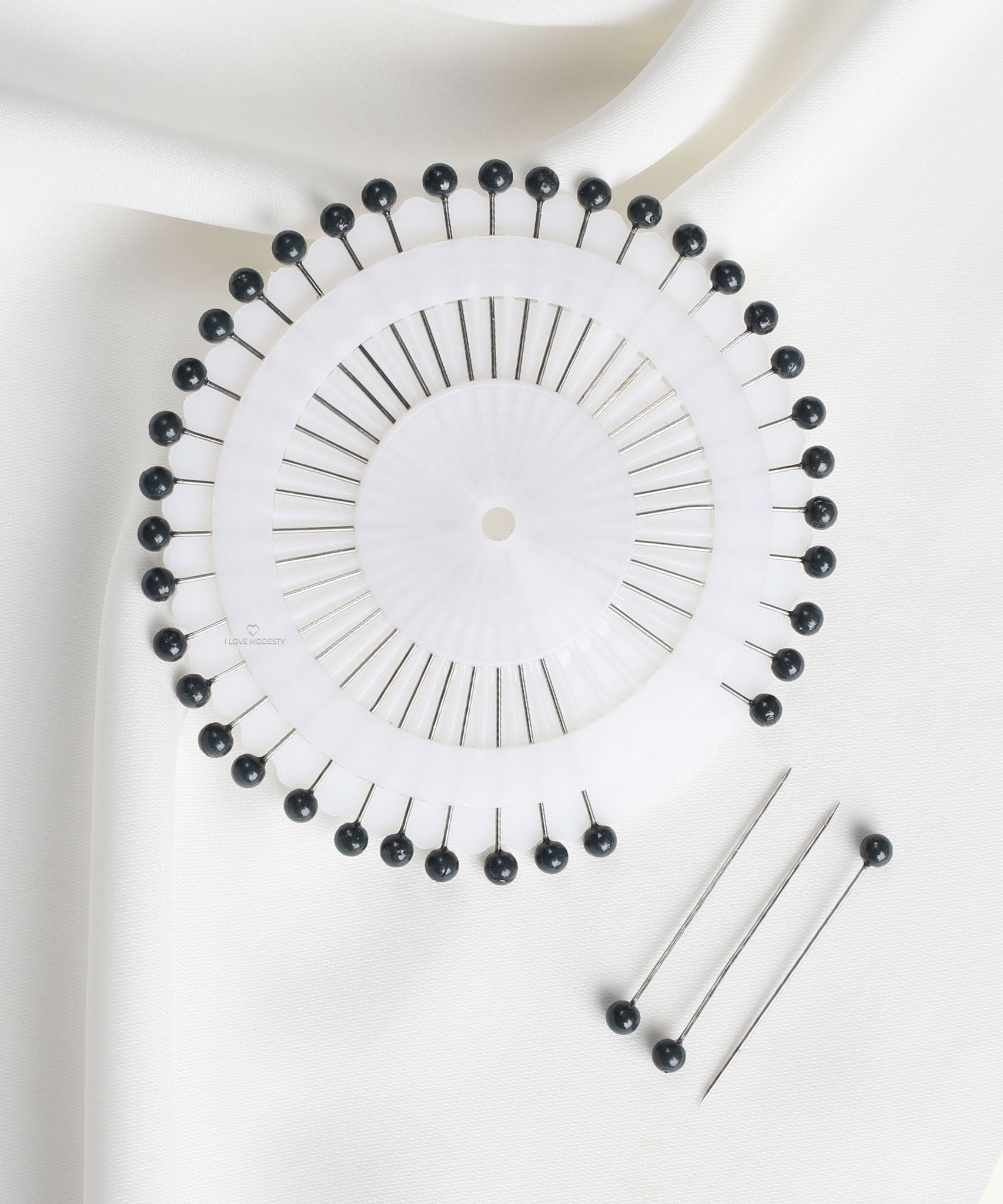 These Black Small Round Head Hijab Pins are crafted from steel and come neatly arranged in a compact storage wheel, making them easy to use and store.