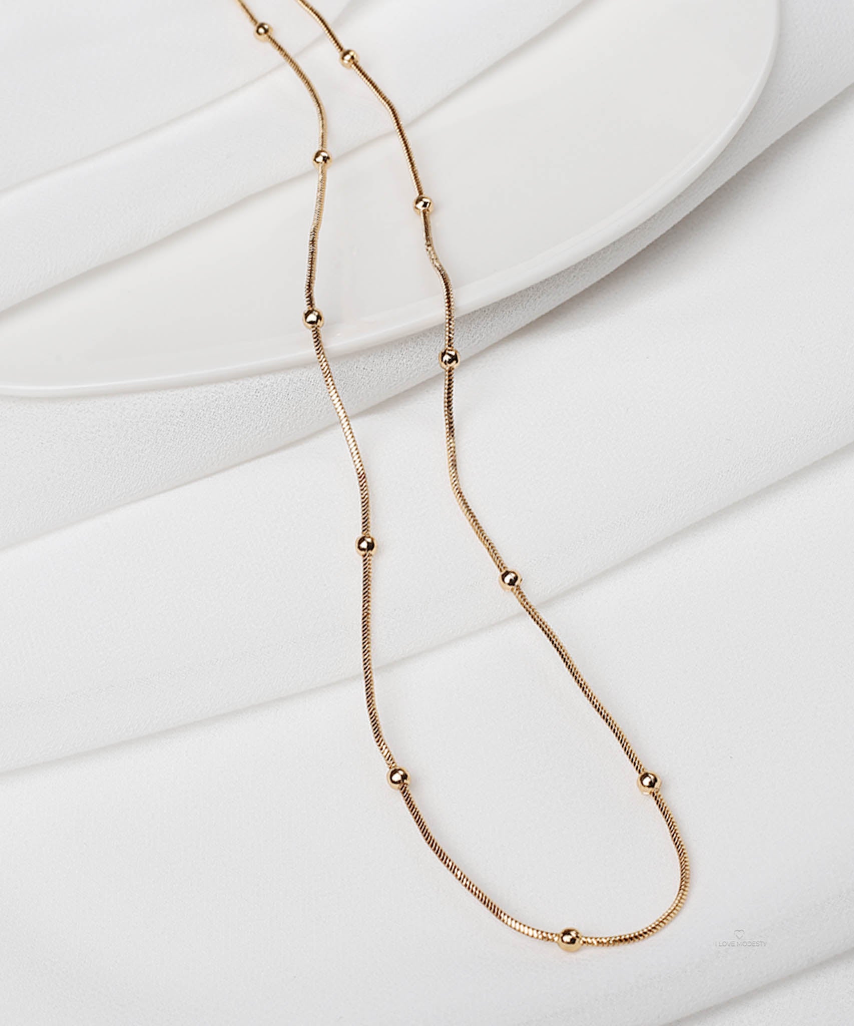 This Gold Beaded Snake Chain Necklace features a classic snake chain accented with subtle, evenly spaced gold beads. Its shimmer and minimalist detailing make it perfect for everyday wear, layering, or pairing with formal outfits.
