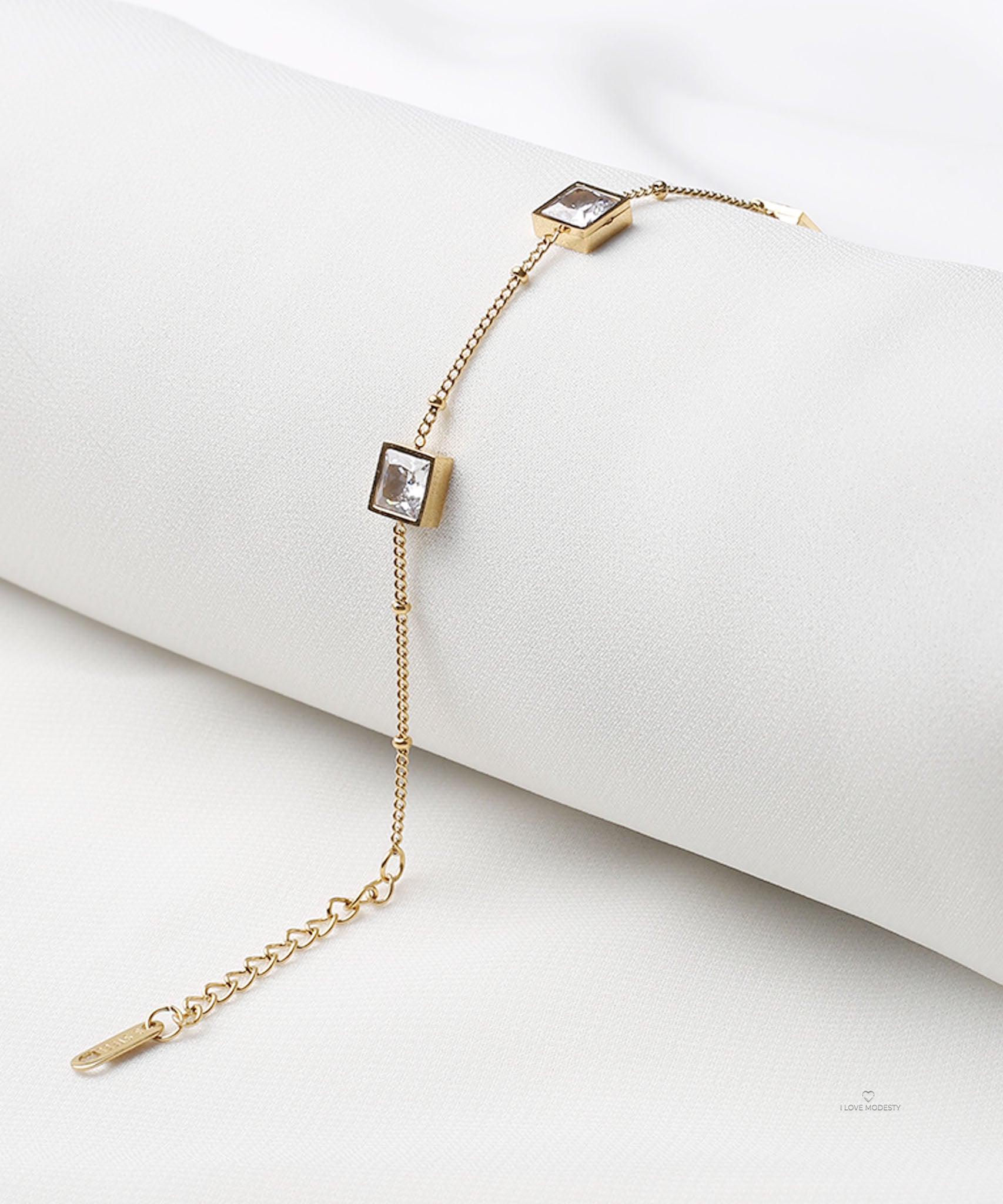This Gold Square Crystal Bracelet showcases three bezel-set square crystals linked along a fine gold-toned chain. Finished with an adjustable closure for a comfortable fit, it's ideal for formal occasions and evening wear.