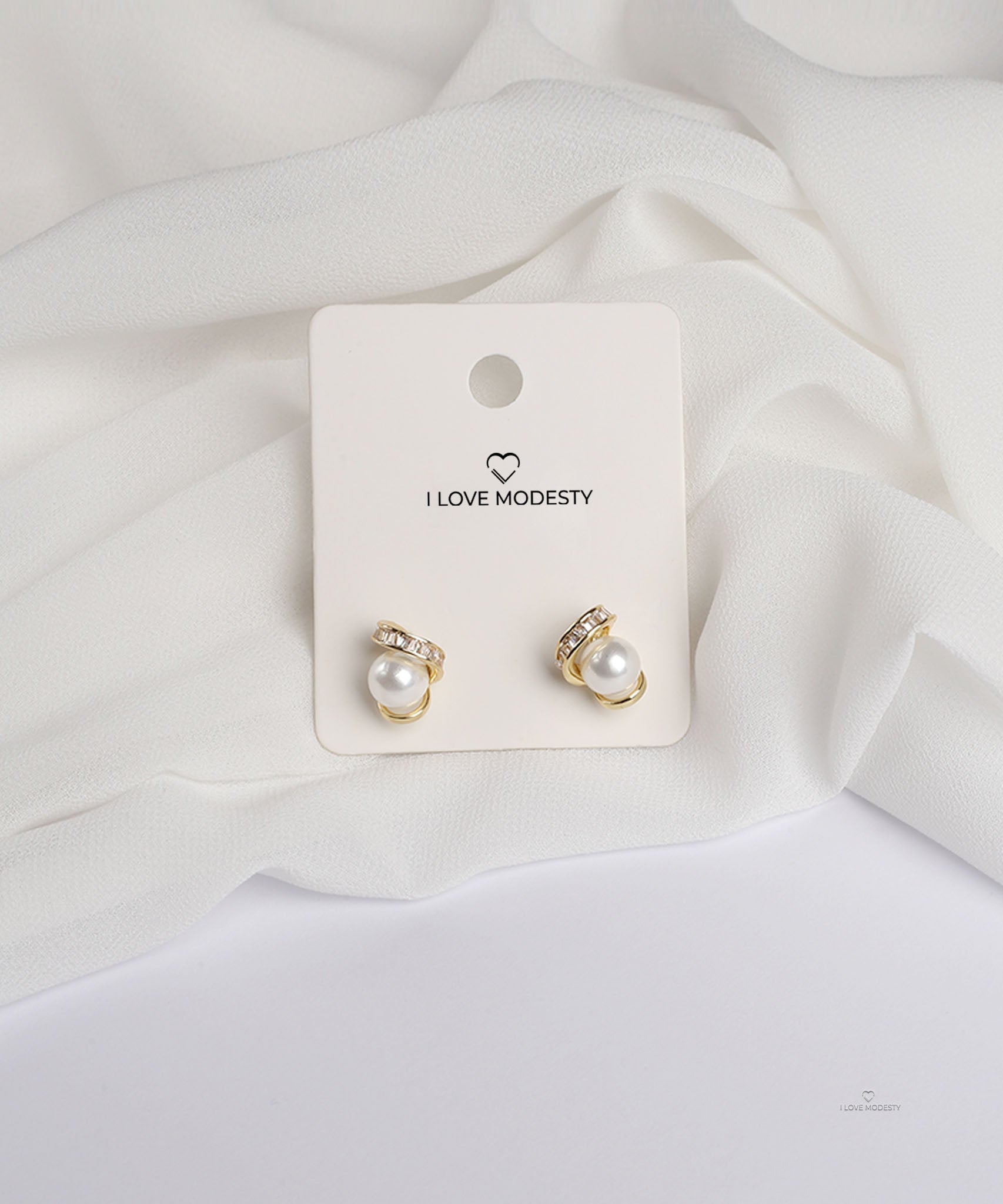 These Gold with Ivory White Pearl Stud Earrings feature an ivory white pearl accented with a row of crystal baguettes for subtle sparkle. The refined design adds a polished finish to both casual and formal looks.