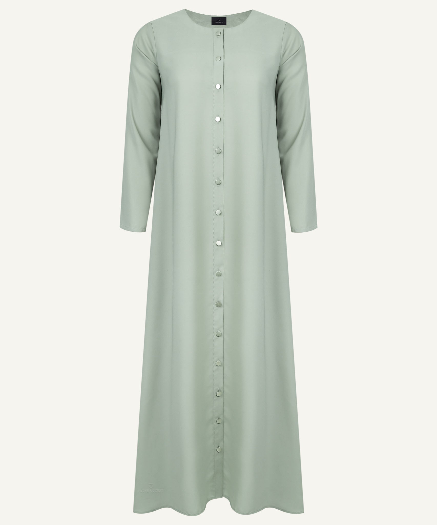 This Greyed Sage Button-Down A-line Dress, is crafted from lightweight, soft, and flowy georgette-chiffon. Ideal for family gatherings, and special daytime occasions.