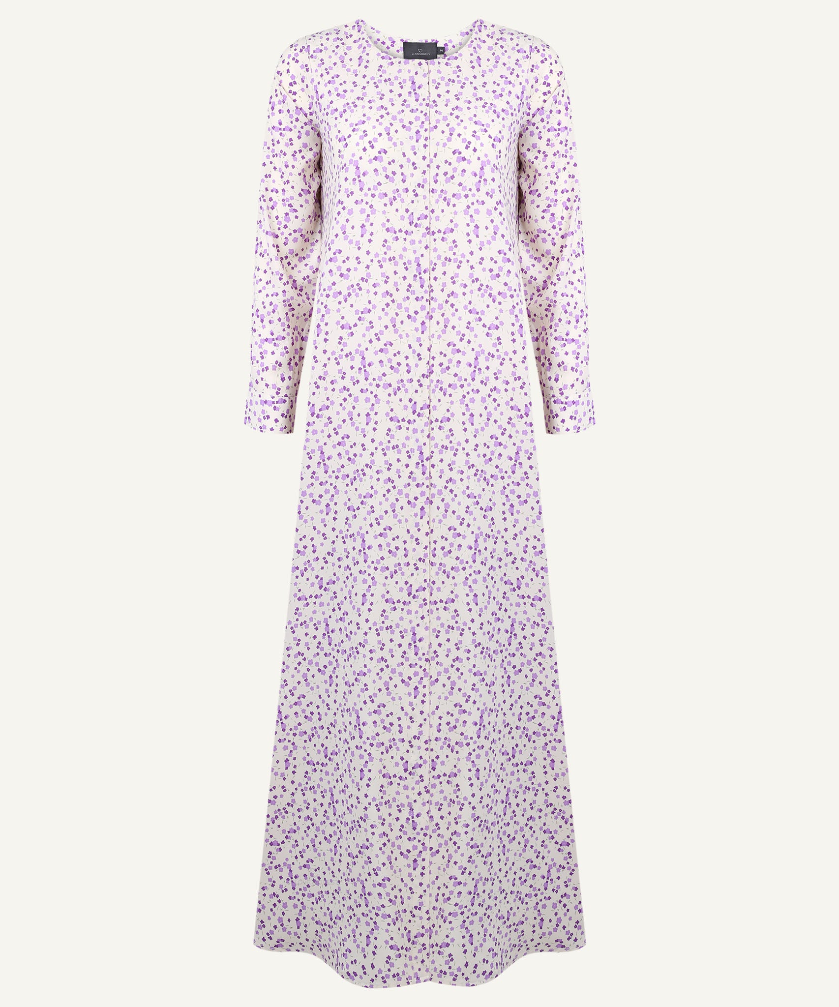 This Lilac Floral Hidden Placket Maxi Dress is crafted from lightweight georgette fabric in an A-line silhouette, featuring a round neckline and a hidden button placket. Perfect for casual wear and daytime outings in warm weather.