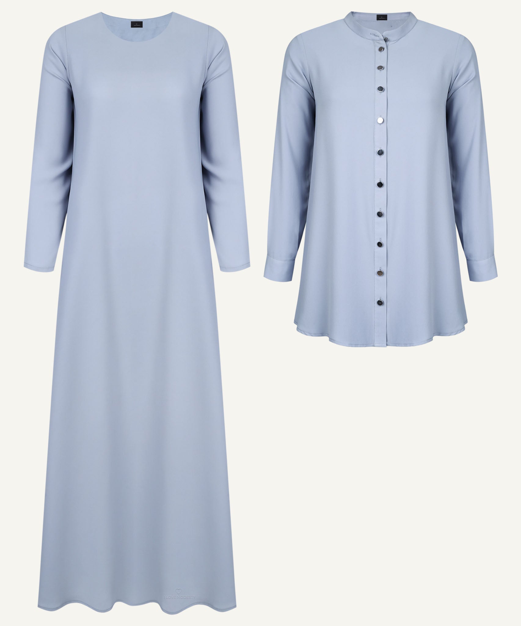 This Mist Cloud Button Down Top and Slip Dress Matching Set, both crafted from soft, flowy Georgette. Designed for office meetings or formal day events.