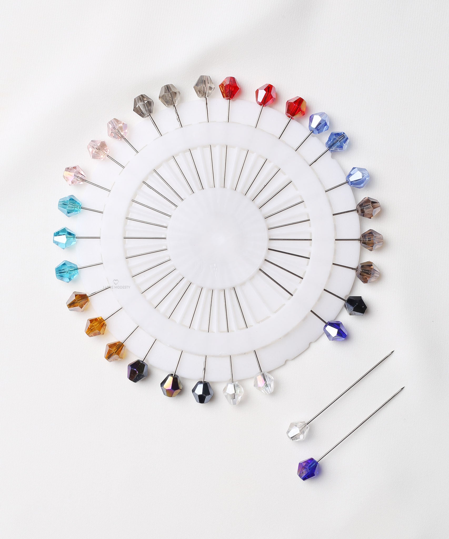 These Multi Rhinestone Head Hijab Pins Pins are crafted from steel and come neatly arranged in a compact storage wheel, making them easy to use and store.