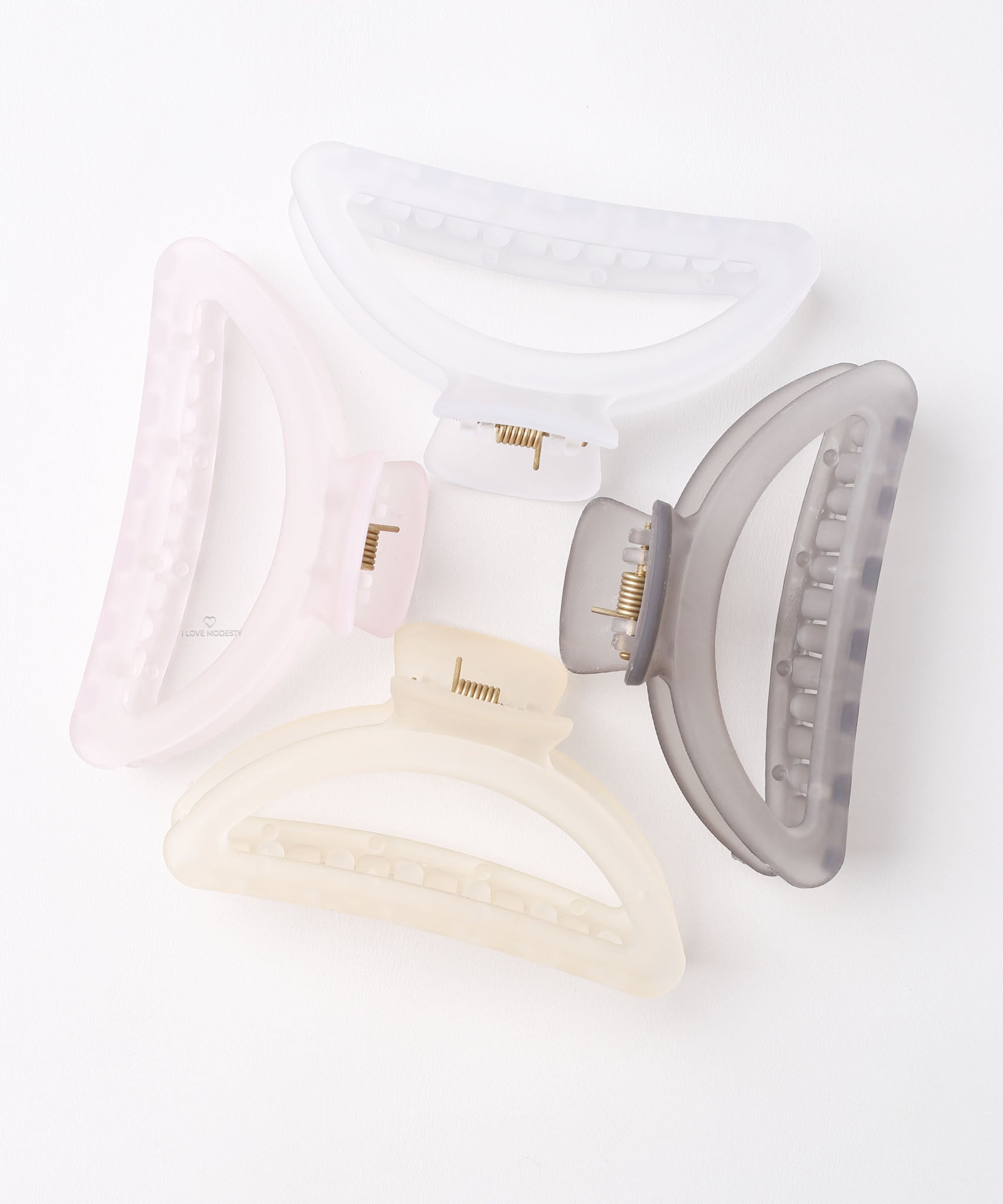 The Neutral Arc Claw Clips features a modern design with a sleek shape and smooth finish. Available in Clear, Cream, Soft Pink, & Grey, each clip combines functionality with style perfect for effortless everyday looks or a polished finish. Perfect for quickly securing hair, creating easy half-up styles, holding back bangs, or keeping hair neatly in place during daily activities. Sold separately.