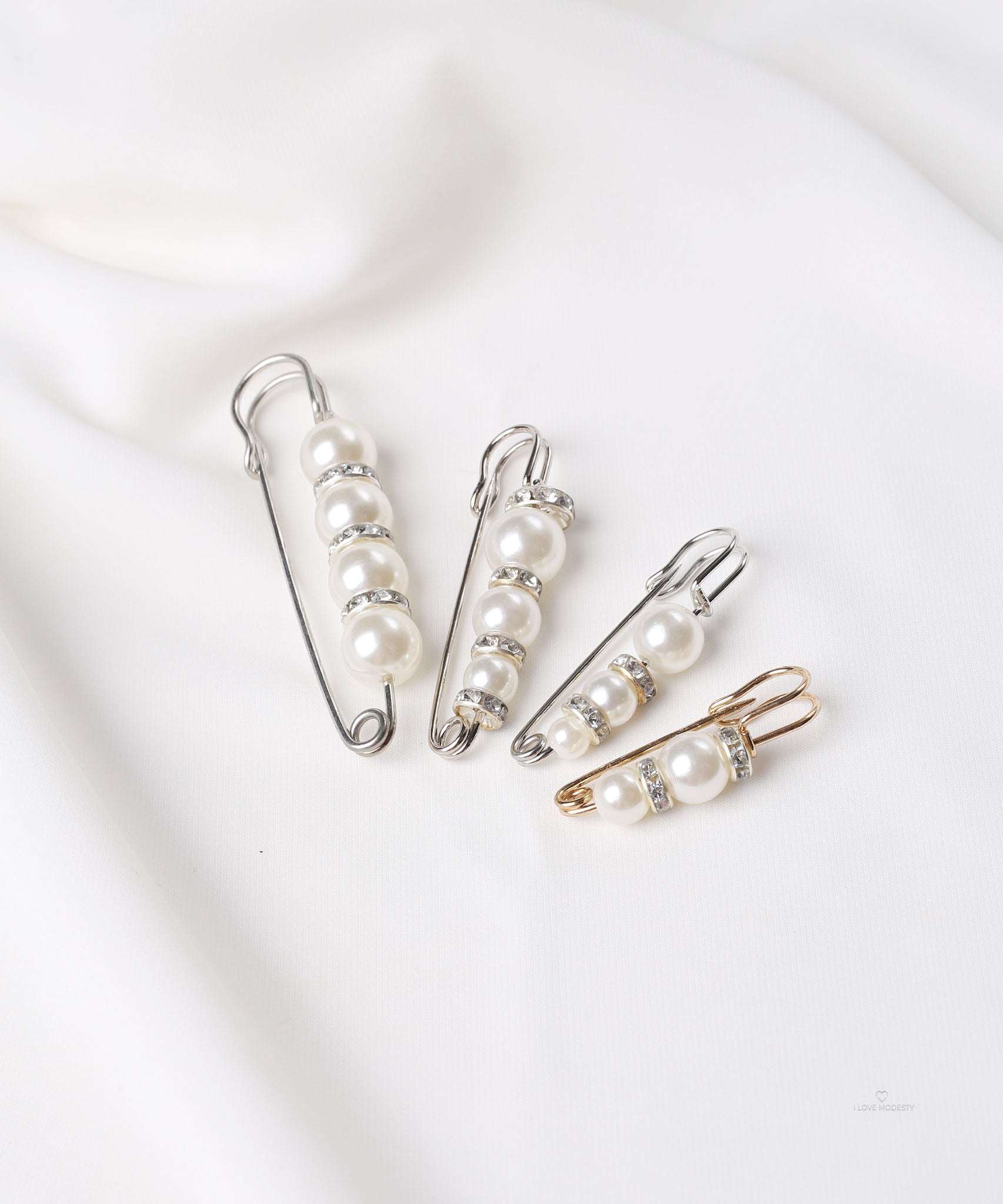 These Pearl Brooch Pin Set feature smooth pearls with gold accents. Their subtle shimmer adds a refined touch to any hijab or outfit, perfect for everyday wear or special occasions.