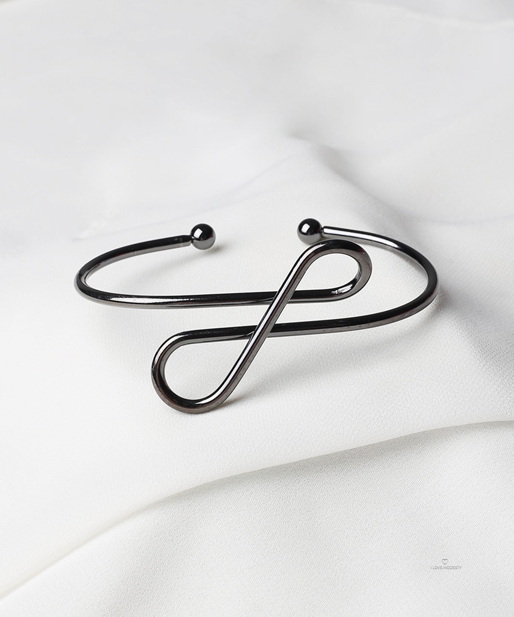 This Platinum Black Infinity Open Cuff Bracelet features a sleek infinity design with a polished finish. Lightweight, minimal, and easy to style perfect for casual to workwear looks.