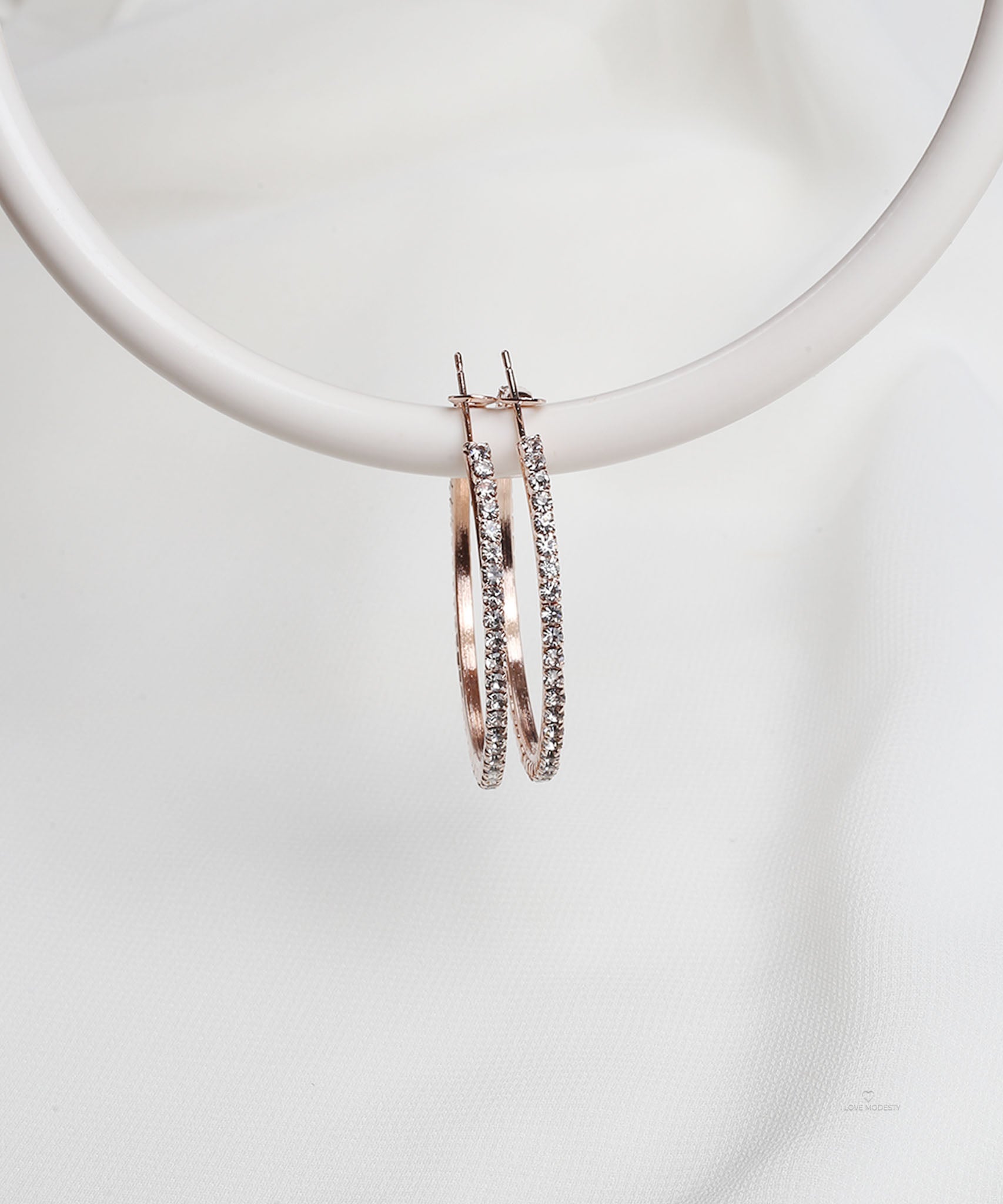 These Rose Gold Pave Crystal Hoop Earrings are lined with pave-set crystals for a luminous finish that catches the light with every move. Perfect for weddings, formal evenings looks with a refined edge.