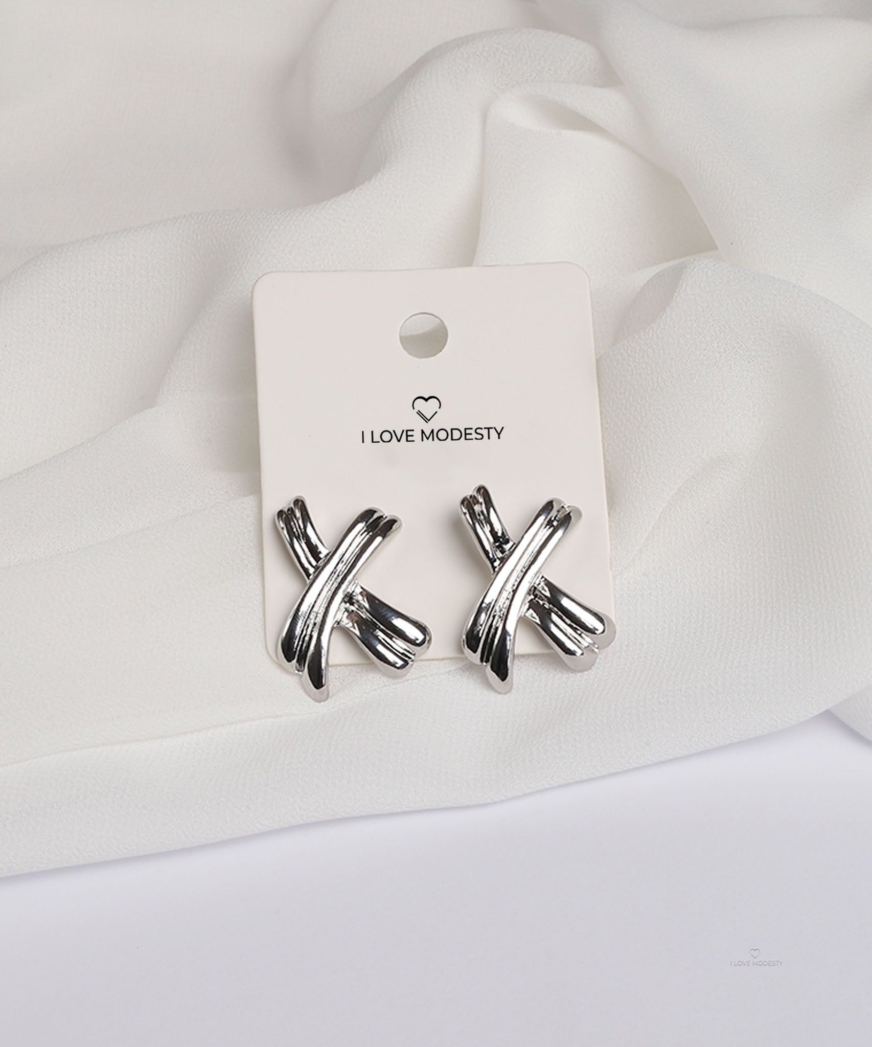 These Silver Abstract Crisscross Earrings feature a high-shine finish and intersecting bands that create a dynamic, contemporary silhouette. Ideal for elevating both everyday outfits and occasion wear.