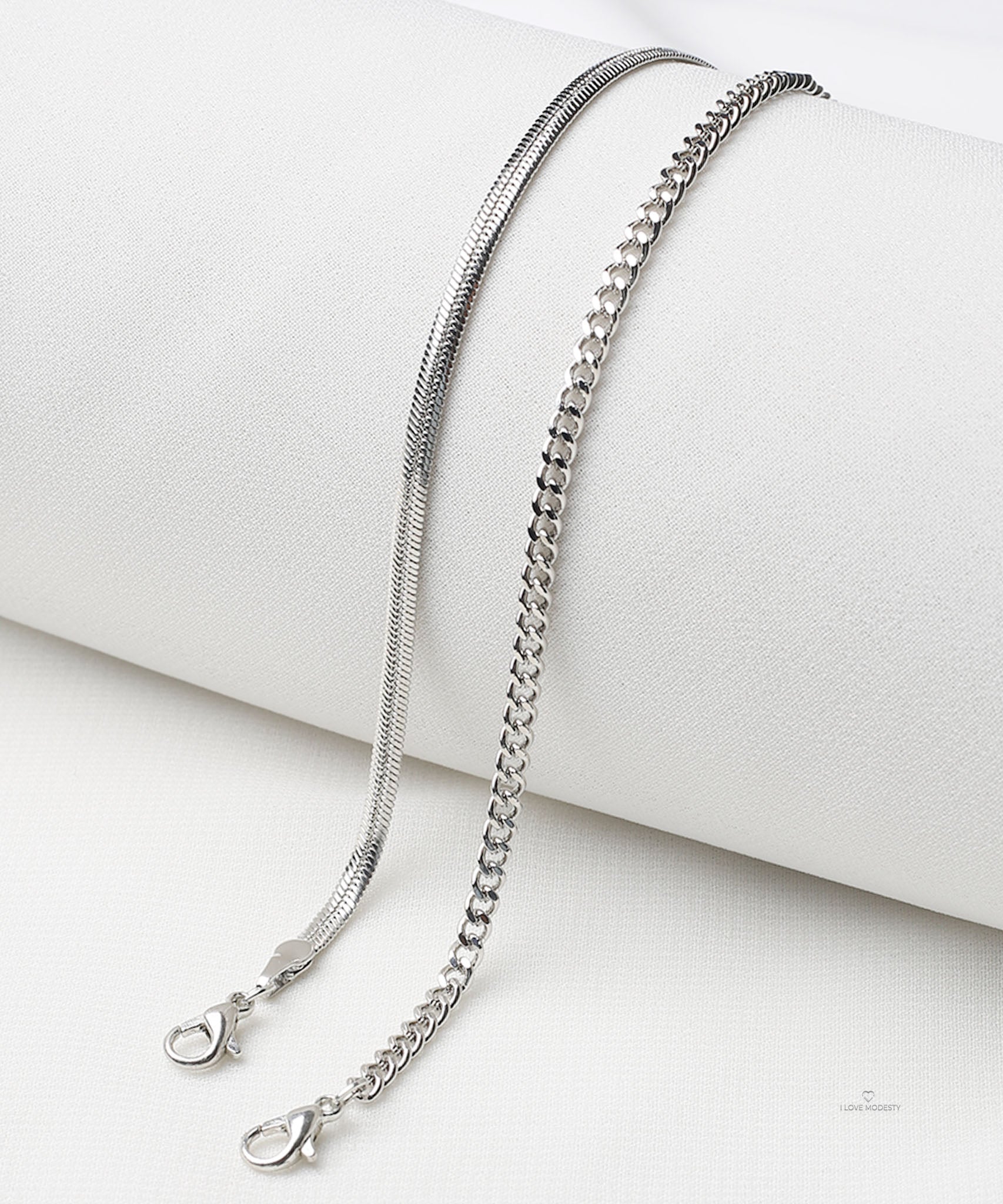 This Silver Duo Chain Bracelet Set features a sleek snake chain and a polished curb link, offering a balanced mix of smooth shine and subtle edge. Designed with adjustable clasps for a custom fit, the set includes two lightweight bracelets. Each piece is perfect for stacking or wearing solo ideal for casual wear or workwear.