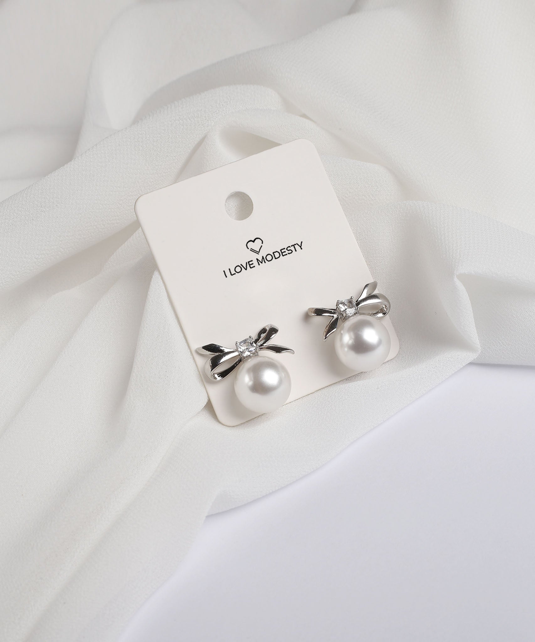 These Silver Pearl Bow Stud Earrings feature a polished silver bow design, adorned with a central crystal and finished with a pearl. Perfect for both everyday wear and special occasions.