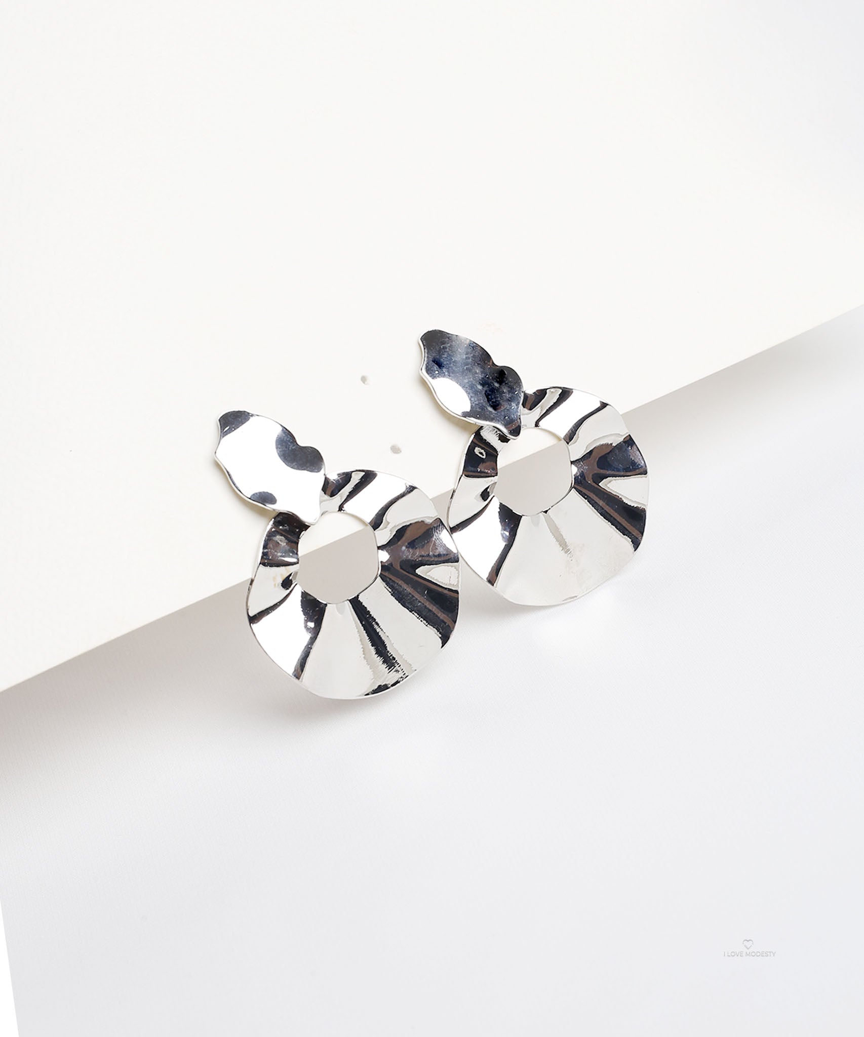 These Silver Rippled Open Circle Earrings feature a wavy, open-circle design with a high-shine metallic finish. Their abstract shape and modern texture add a refined touch. Perfect for everyday wear, formal occasions, and evening events.