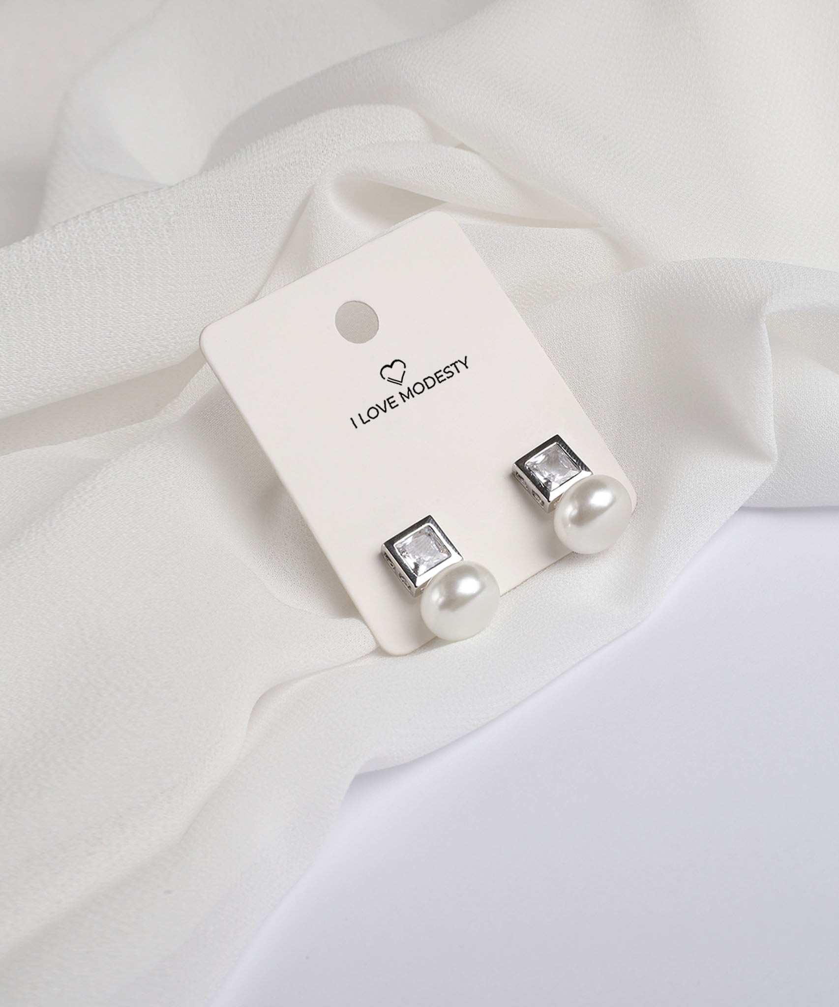 These Silver Square Crystal & Pearl Stud Earrings feature a silver-tone square setting accented with a sparkling crystal and finished with a pearl. Perfect for both everyday wear and special occasions.