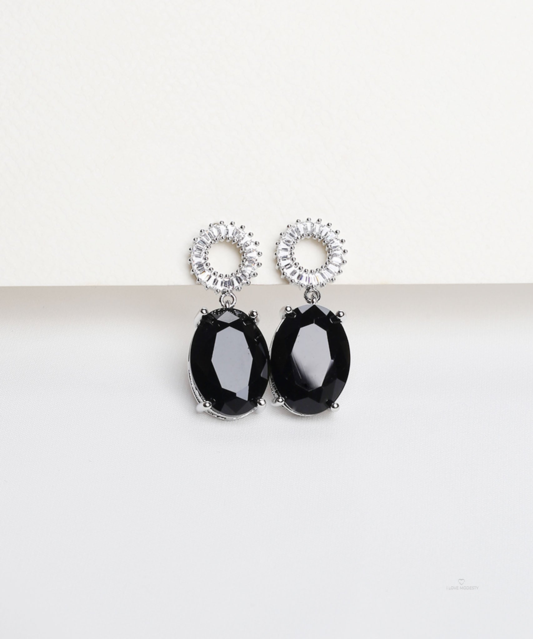 These Silver with Black Crystal Drop Earrings featuring black crystals set in a silver-tone finish, these drop earrings are accented with a circle of clear baguette stones. A refined piece perfect for evening or formal occasions.