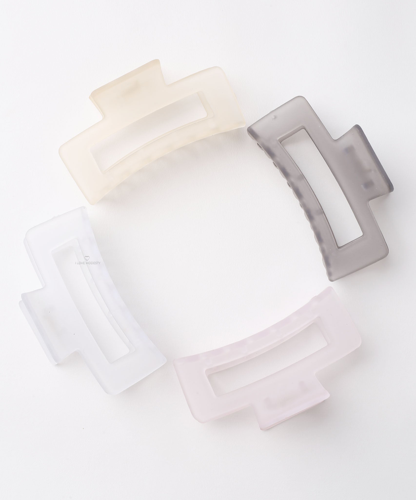 The Soft Colors Rectangular Claw Clips features a modern design with a sleek shape and smooth finish. Available in Cream, Soft Pink, Clear & Grey, each clip combines functionality with style perfect for effortless everyday looks or a polished finish. Perfect for quickly securing hair, creating easy half-up styles, holding back bangs, or keeping hair neatly in place during daily activities. Sold separately.